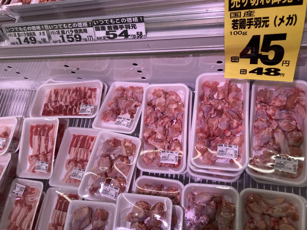 特に鶏むね肉や豚こま肉など家庭でよく使う部位が驚くような安さで並んでいます。