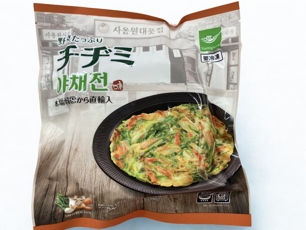 業務スーパーの冷凍食品で絶対に外せないのが、フライパンで焼くだけで完成する野菜たっぷりのチヂミ。外食で食べるような外はカリカリ、中はモチモチの食感が、1枚あたり約100円台という神コスパで楽しめます。