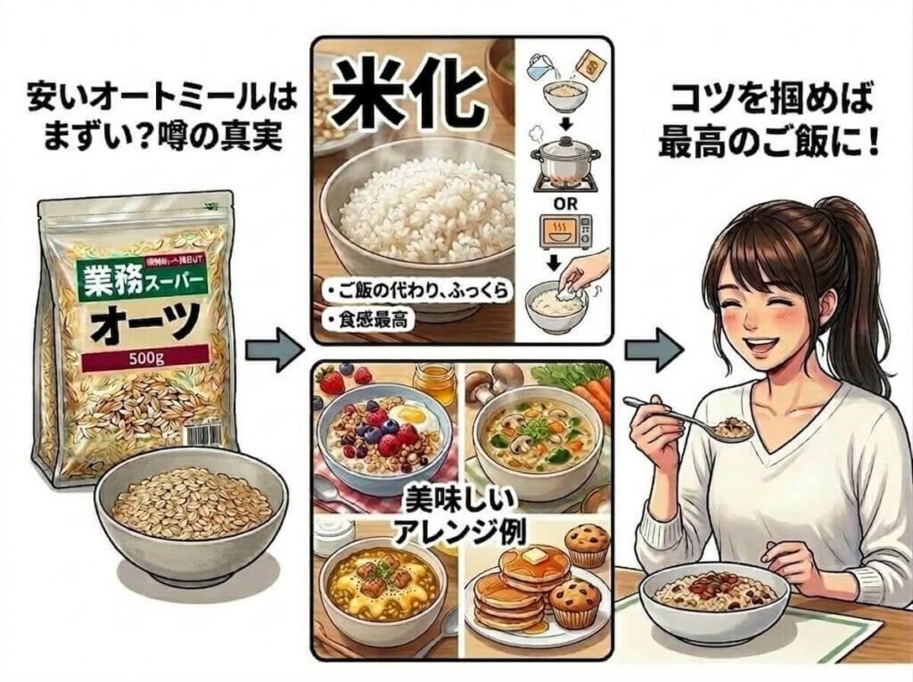業務スーパーの安いオートミールはまずい?美味しく食べる米化とアレンジ